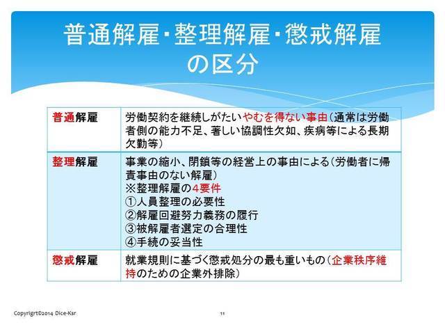 ・解雇についても、普通解雇・整理解雇・懲戒解雇の区分から、解雇権濫用法理にみられる合理性・相当性にも焦点をあてた解説を行いました。