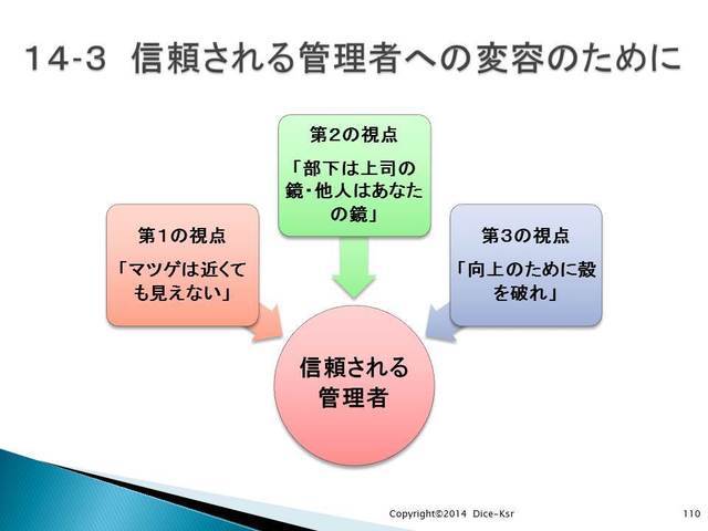 ・セミナーでのまとめでは、信頼される管理者への変容のための3つの視点を確認します。